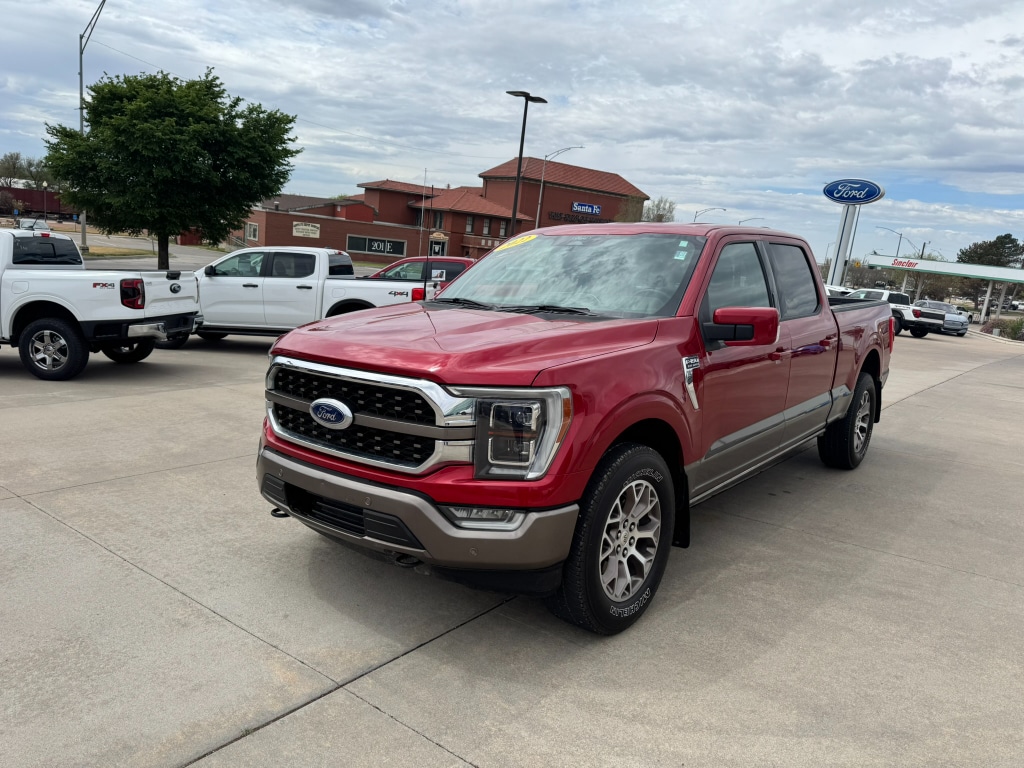 Power, luxury, and capability come together in this 2022 Ford F-150 King Ranch 4WD with the legendary 5.0L V8 gasoline engine - now available in Dodge City, KS at the best price around. This King Ranch brings premium leather-appointed seating, rugged off-road readiness with the Off-Road Package, and smart technology to every drive. The confident 5.0L V8 delivers strong towing and hauling performance while the 4WD system provides traction and control whether you're heading out on the ranch or cruising the highway.