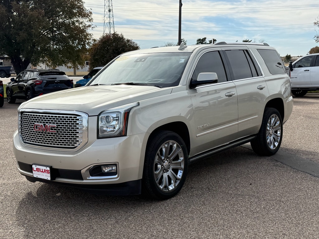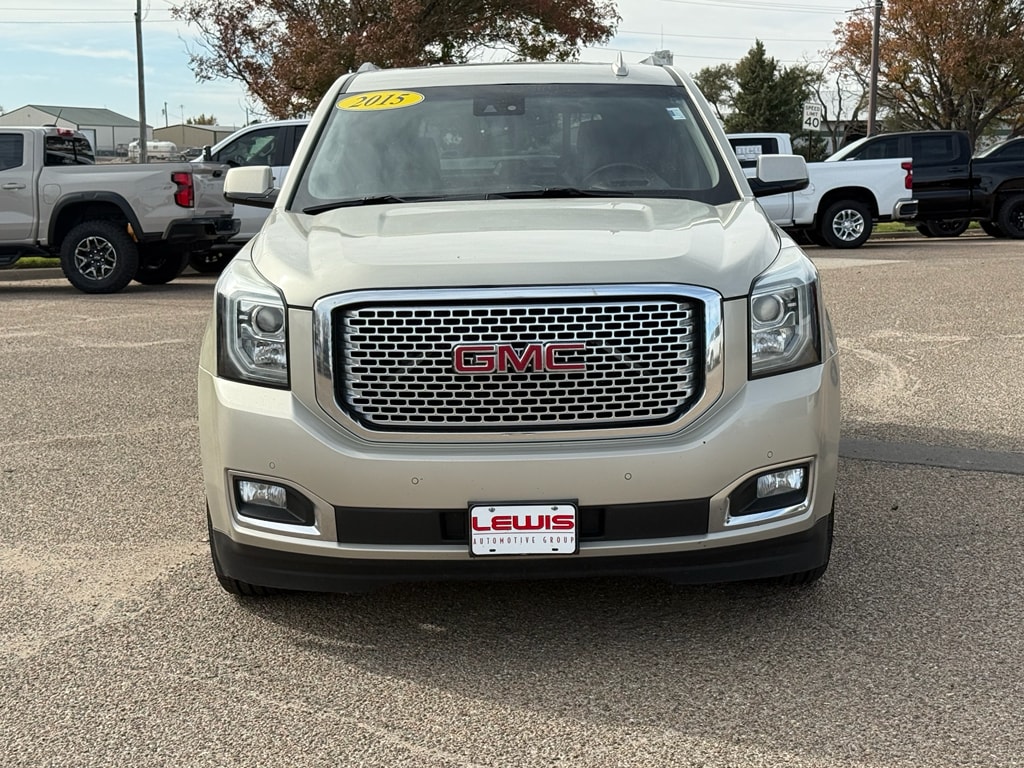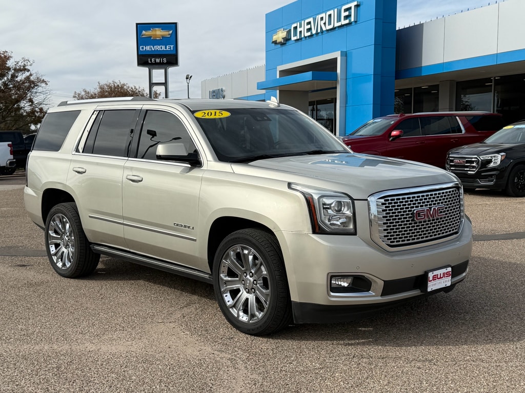 It has auto-adjust speed for safe following. Keep your hands warm all winter with a heated steering wheel in this 2015 GMC Yukon 1500 . Start this unit from inside with remote start. This GMC Yukon features a high end BOSE stereo system. The leather seats in this GMC Yukon are a must for buyers looking for comfort, durability, and style. This vehicle is equipped with the latest generation of XM/Sirius Radio. This unit's Lane Departure Warning helps keep you in your lane. This vehicle features a hands-free Bluetooth phone system. It warns of approaching vehicles with Cross-Traffic Alert. Protect this GMC Yukon from unwanted accidents with a cutting edge backup camera system. The installed navigation system will keep you on the right path. The vehicle has four wheel drive capabilities. This GMC Yukon is painted with a durable multi-coat tan finish. The GMC Yukon is outfitted with an OnStar communication system.