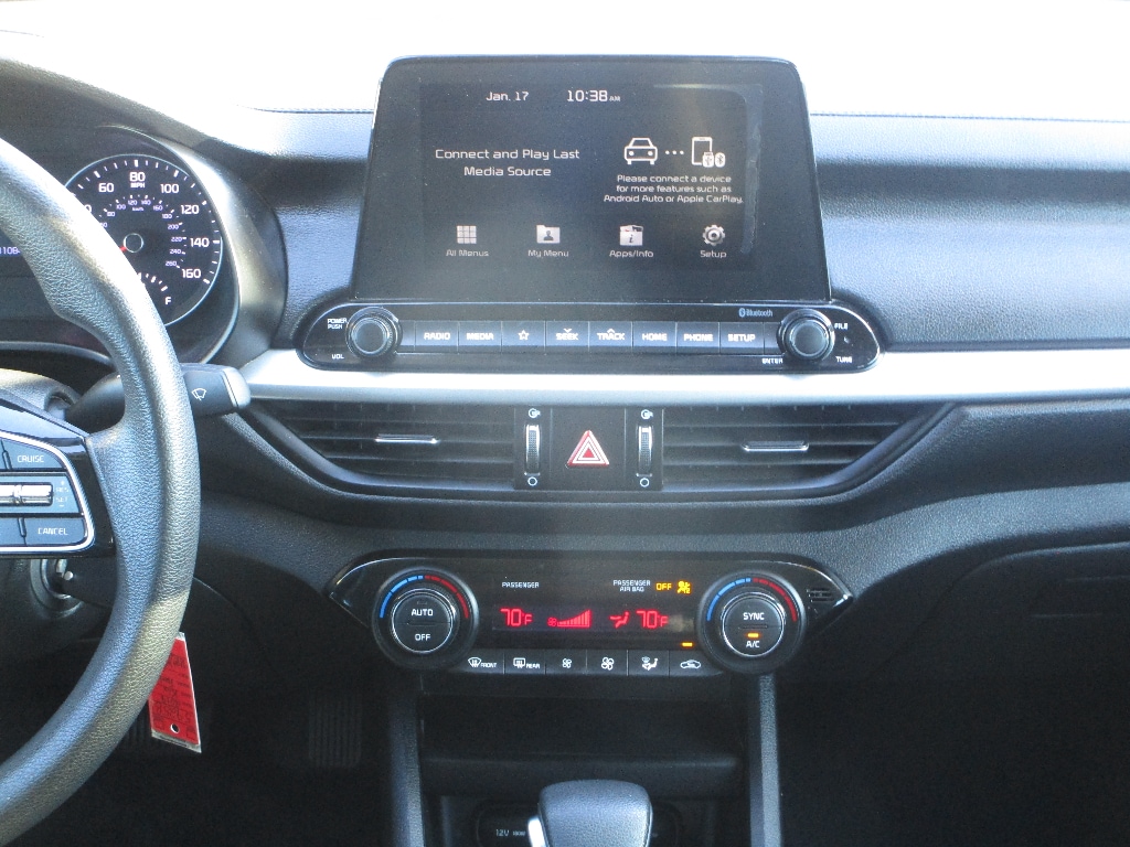 Just the right size to accommodate all your needs. It has room for passengers and plenty of trunk space. This mid-size car offers Android Auto for seamless smartphone integration. Apple CarPlay: Seamless smartphone integration for it - stay connected and entertained on the go! It offers Automatic Climate Control for personalized comfort. This vehicle has an automatic transmission. See what's behind you with the back up camera on this vehicle. Set the temperature exactly where you are most comfortable in this Kia Forte. The fan speed and temperature will automatically adjust to maintain your preferred zone climate. Easily set your speed in the Kia Forte with a state of the art cruise control system. Increase or decrease velocity with the touch of a button. Electronic Stability Control is one of many advanced safety features on this vehicle. This 2019 Kia Forte has a 4 Cyl, 2.0L high output engine. The vehicle is front wheel drive. The vehicle is equipped with a gasoline engine. This Kia Forte features a hands-free Bluetooth phone system. This mid-size car embodies class and sophistication with its refined white exterior.