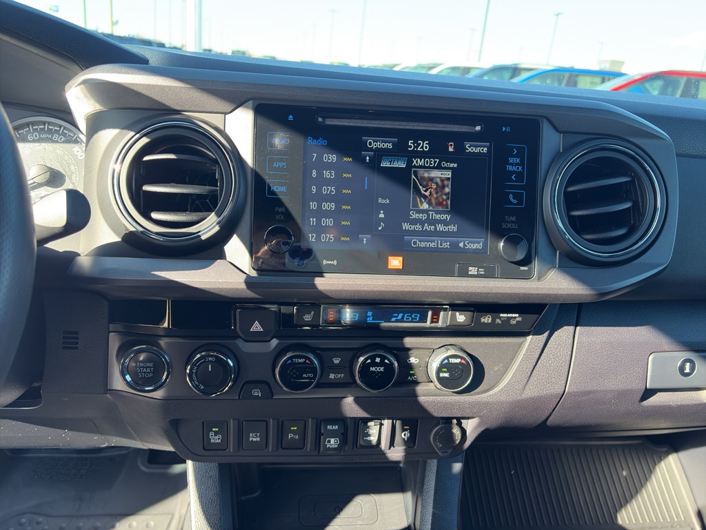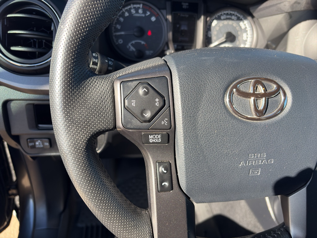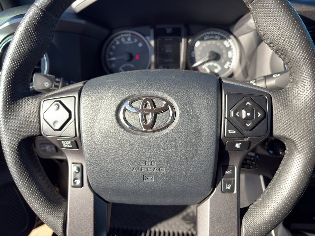 It keeps you comfortable with Auto Climate. The state of the art park assist system will guide you easily into any spot. The vehicle warns of approaching vehicles with Cross-Traffic Alert. The leather seats in this model are a must for buyers looking for comfort, durability, and style. The installed navigation system will keep you on the right path. Protect it from unwanted accidents with a cutting edge backup camera system. This unit features a hands-free Bluetooth phone system. The Toyota Tacoma's blind spot monitor enhances safety. The Toyota Tacoma projects refinement with a racy metallic gray exterior. When you encounter slick or muddy roads, you can engage the four wheel drive on the Toyota Tacoma and drive with confidence. It has a V6, 3.5L high output engine. Set the temperature exactly where you are most comfortable in this model. The fan speed and temperature will automatically adjust to maintain your preferred zone climate.
